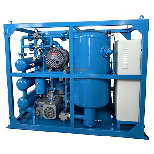 接著,加熱后的潤滑油會進入真空脫氣箱,在箱內形成真空環(huán)境,同時通過旋轉或者噴淋等方式將潤滑油噴灑成薄膜,利用大面積暴露于真空環(huán)境的方式,使得油品中的氣體通過真空泵被抽出,從而實現(xiàn)了脫氣的目的。