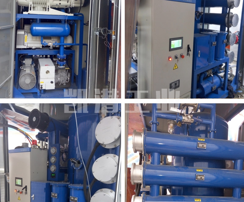 110KV-330KV的變壓器絕緣油凈化處理可以達(dá)到乙炔值水分為零,無雜質(zhì)污染,提升油的使用周期,也適用于高等級新油,進(jìn)口油的深度處理,本機增加了羅茨泵增壓系統(tǒng),二次高真空分離系統(tǒng),三維立體閃急快速蒸發(fā)系統(tǒng),其脫水、脫氣、脫乙炔、、除酸值、脫除游離炭等,處理后油極限耐壓值更高,既可作濾油使用。也可作為獨立真空源對變壓器設(shè)備進(jìn)行真空干燥注油功能。